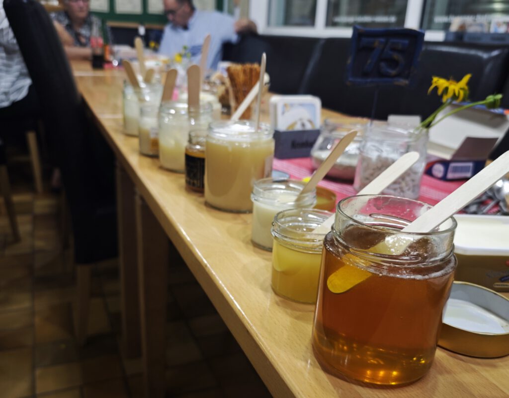 Im Laufe der Veranstaltung fand auch eine Honigverkostung statt. Dafür hatten viele Mitglieder eine Probe ihrer diesjährigen Ernte mitgebracht. Die Honigsorten Raps, Linde, Wald fanden großen Anklang. Auch wurde allen Mitgliedern die regionalen Geschmacks-Unterschiede klar; Rapshonig aus Kleinenbremen schmeckt anders als Rapshonig aus Eisbergen.