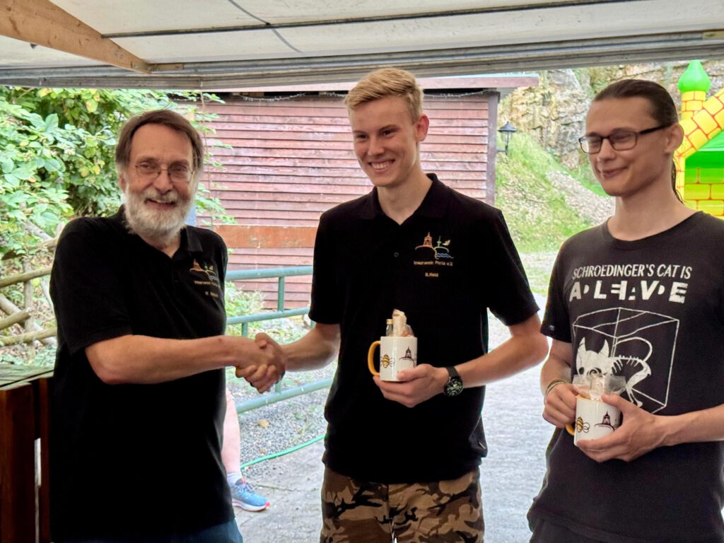 Der Vereins-Vorsitzende Martin Schulz dankte den beiden jungen Fest-Organisatoren Mathis Golnik und Boas Held für das gelungene Fest und überreichte ihnen ein kleines Präsent.