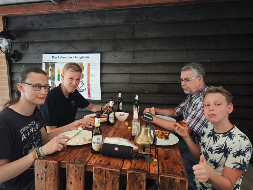 Wieder einmal war es soweit: Das alljährliche Sommerfest der Portaner Imker im Schützenhaus des Neeser Bürgerbataillons stand an. Vor der romantischen Felsenkulisse wurde diesmal auch das 75-jährige Bestehen des Vereins gefeiert. Bei Bratwurst, Salaten und verschiedenen Kaltgetränken ließen es sich Mitglieder und ihre Familien gut gehen. Als Grillmeister fungierte Alfred Rubin.